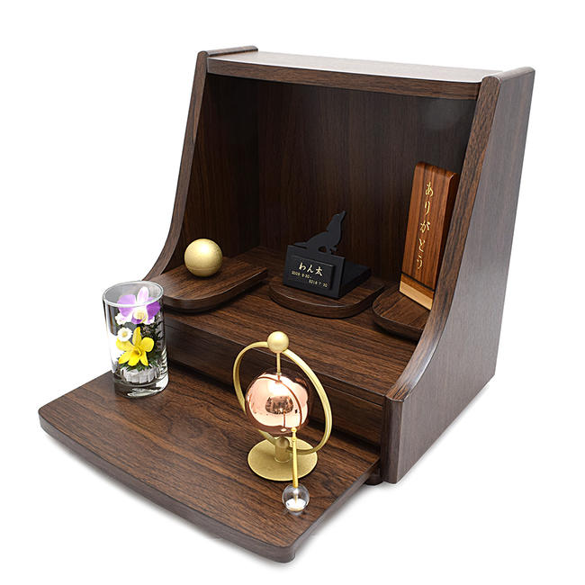 製品仕様 商品名 お仏壇 「パーソナル」 ウォールナット色 特徴 ペット供養におすすめのミニお仏壇です。