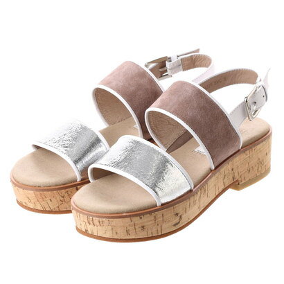 【アウトレット】モード エ ジャコモ カリーノ MODE ET JACOMO carino コルクソールバックベルトサンダル (シルバーコンビ)